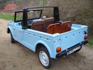this Sherpa used to be a camera rig car, with a tubular frame mounted on top of the flatbed. Restauration in progress with Citroen GS engine